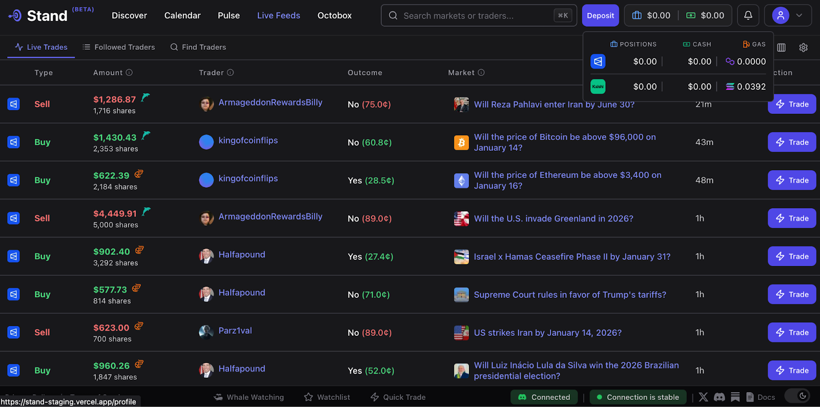 In a world of prediction markets, traders need the best tools available. Stand is ready to serve you so you can put real skin in the game. The markets are ready. The tooling is better. Where do you Stand? 🎯